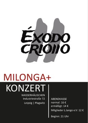 - Éxodo Criollo -> Eintritt 16 € / ermäßigt 14 € / Mitglieder 12 €